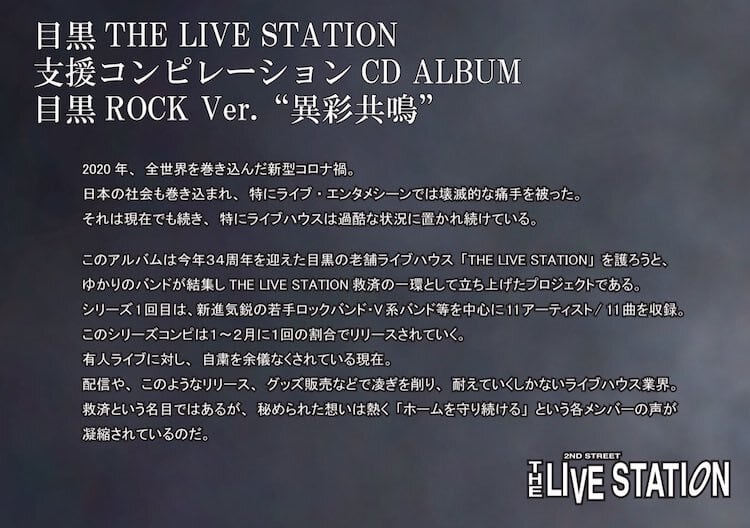 『異彩共鳴』目黒THE LIVE STATION支援コンピレーションCD ALBUM 目黒ROCK Ver.